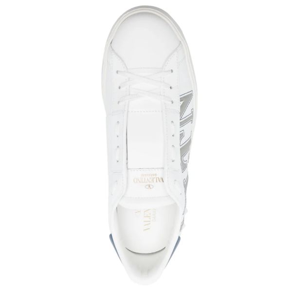 • Valentinos Turnschuh in Weiß und Grau ist aus Leder gefertigt.